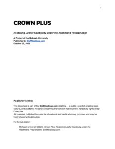 This paper is divided into three parts, each exploring a distinct dimension of the Haldimand covenant: its legal origins, its modern violations, and the path toward lawful restoration. Together, they form the living record of a truth that has been long buried beneath colonial misinterpretation.Crown Plus stands for the principle that the Mohawk Nation is not a subject of the Crown, but a co-sovereign pillar upon which the Canadian state itself rests.